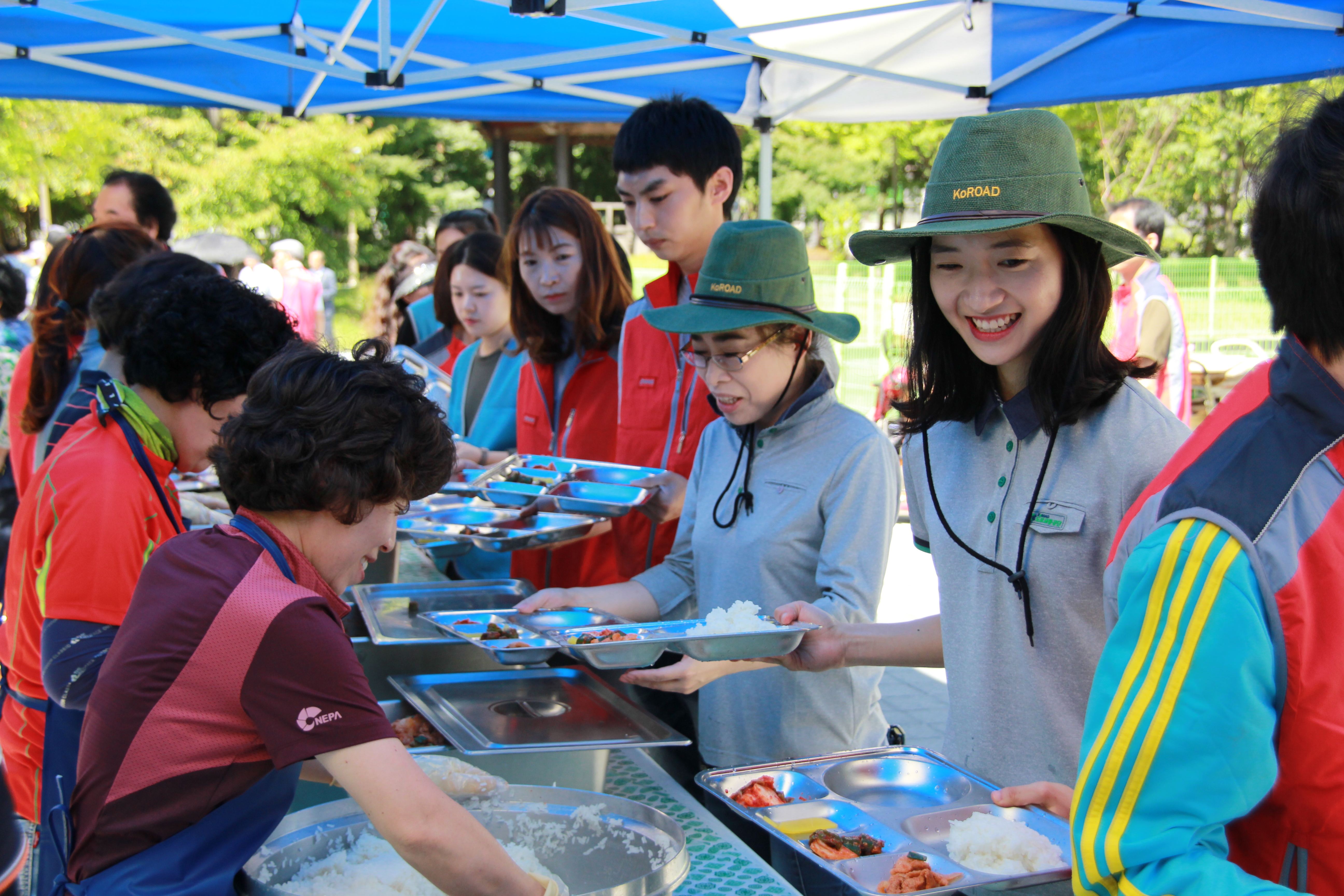 어려운 이웃들과 따뜻한 밥 한 끼를 함께 나누는 '따뜻한 밥상' 나눔활동이 1일 전주시 인후3동 아람길공원에서 지역 어르신 및 소외계층을 대상으로 진행됐다.