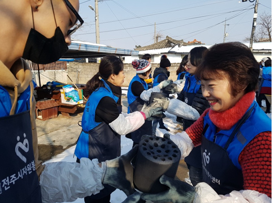 올겨울 들어 가장 추운 영하 10도 이하의 한파가 지속되는 가운데 효사랑전주요양병원 직원들이 따뜻한 사랑의 연탄나눔으로 추위를 녹였다.