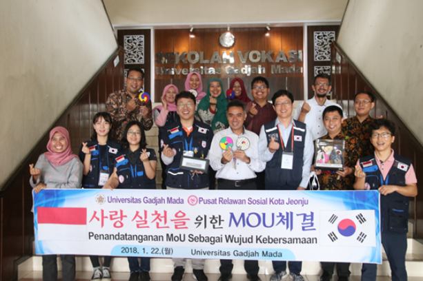 사단법인 전주시자원봉사센터(이사장 황의옥)가 22일 인도네시아 가자마다 대학과 자원봉사 활성화를 위한 MOU협약 체결했다.