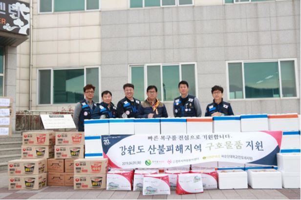 사단법인 전주시자원봉사센터(이사장 황의옥)는 9일 산불 피해지역인 강릉시 옥계면 크리스탈 벨리센터 등 4개소를 찾아 화재로 불의의 피해를 입은 주민 70여 명에게 당장 필요한 생필품 등을 전달했다. 이번 생필품 지원은 전주시가 지난 8일 담요 등 1000만원 상당의 긴급구호물품을 지원하기 위해 강원도를 찾은 지 불과 하루만이다.