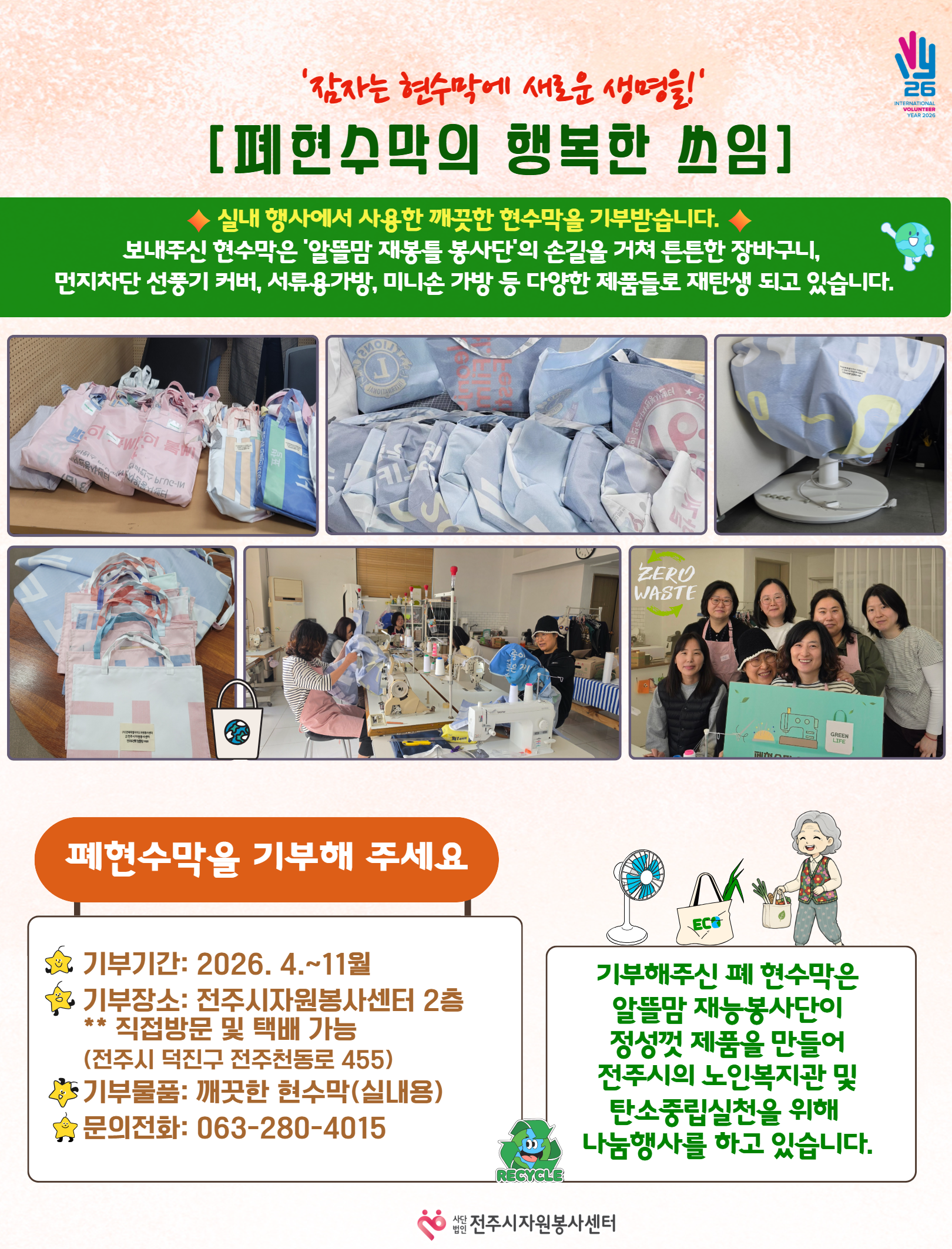 ◎ 잠자는 현수막에 새로운 생명을 전주시자원봉사센터로 기부해주세요 ◎